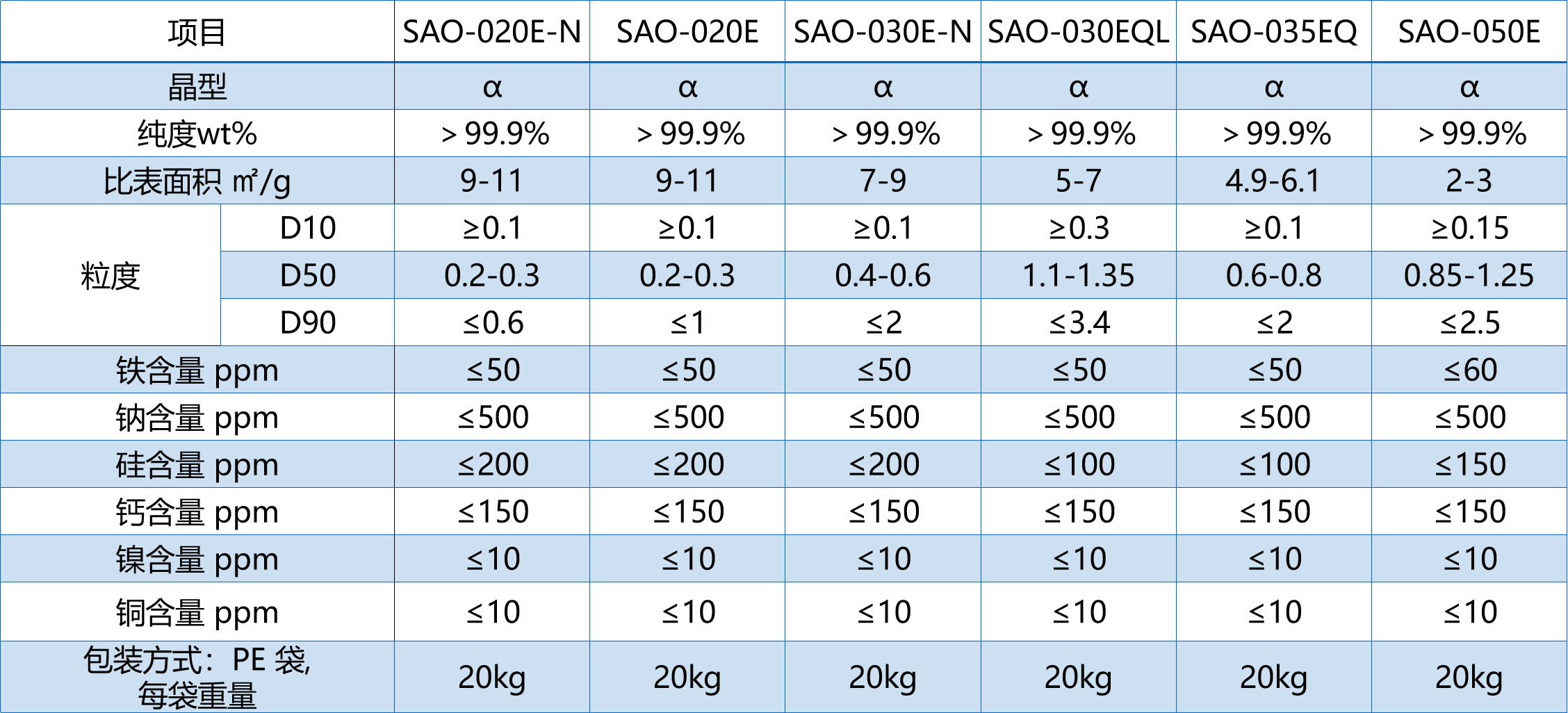 99.99%高纯氧化铝产品列表: